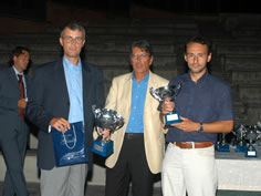 Andrea Galler, vincitore singolare pubblicisti, il presidente Giacomo Ferrari e Felice Calabrò, finalista